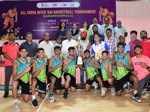 राजनांदगांव। भारतीय खेल प्राधिकरण प्रशिक्षण केन्द्र राजनांदगांव द्वारा दिग्विजय स्टेडियम में अखिल भारतीय अंतर साई और अंतर खेलो इंडिया एकेडमी बास्केटबॉल प्रतियोगिता का आयोजन किया गया। प्रतियोगिता में युगांतर खेलो इंडिया बास्केटबॉल एकेडमी राजनांदगांव की बालक बास्केटबॉल टीम ने स्वर्ण पदक प्राप्त किया। 8 से 12 जुलाई 2024 तक चले इस प्रतियोगिता को लीग कम नॉकआउट पद्धति से खेला गया। प्रतियोगिता में साई ट्रेनिंग सेंटर राजनांदगांव की दो टीम, साई ट्रेनिंग सेंटर जबलपुर, साई ट्रेनिंग सेंटर सेलम, साई ट्रेनिंग सेंटर धारवाड़, साई ट्रेनिंग सेंटर वाराणसी, युगांतर खेलो इंडिया एकेडमी एवं साई ट्रेनिंग सेंटर जम्मू की टीमों ने हिस्सा लिया।