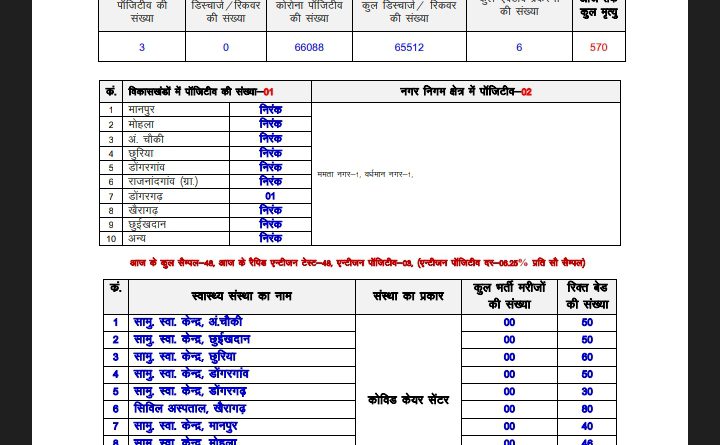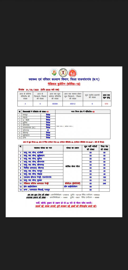 Uncategorizedछत्तीसगढ़ राजनांदगांव जिले में आज फिर मिले 3 कोरोना पॉजिटिव, एक्टिव केस हुए 6 April 1, 2023 नेशन अलर्ट शेयर करें... 1,334 राजनांदगांव । nationalert.in जिले में आज फिर तीन कोरोना पॉजिटिव मरीज मिले हैं. इनमें से दो राजनांदगांव और एक डोंगरगढ़ में पॉजिटिव पाया गया है. जिले में अब 6 एक्टिव मामले है. राजनांदगांव में 5 और डोंगरगढ़ में एक।