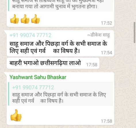 लोगों ने कहा कि मुख्यमंत्री की उम्मीद में ही साहू समाज के लोगों इतनी बड़ी संख्या में कांग्रेस के प्रत्याशियों को जीत दिलाई, ताकि कांग्रेस की सरकार बन सके और ताम्रध्वज साहू मुख्यमंत्री बनें।