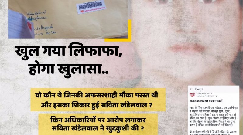 उल्लेखनीय है कि सविता खंडेलवाल ने गत वर्ष आत्महत्या कर ली थी. आत्महत्या के पहले स्वयं को पीडि़त व प्रताडि़त बताते हुए सविता खंडेलवाल ने अपने पति सहित बड़े बड़े पुलिस अफसरों के नाम का उल्लेख किया था.