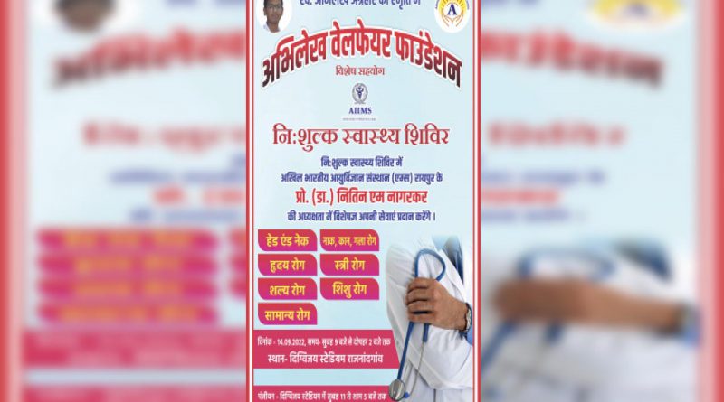 अभिलेख की स्मृति में अभिलेख वेलफेयर फाउंडेशन का गठन करने वाले सचिन बताते हैं कि शिविर में अपनी सेवाएं देने डॉ.नागरकर की अध्यक्षता में एम्स के 40 चिकित्सकों की टीम राजनांदगांव प्रवास पर रहेगी। टीम के द्वारा सामान्य रोगों के अलावा शिशु रोग, स्त्री रोग, नाक-कान-गला रोग, शल्य रोग, हृदय रोग, सिर व गर्दन से जुड़े रोगों का उपचार किया जाएगा।
