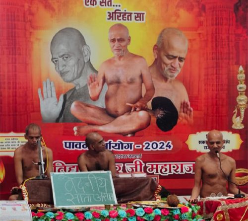 राजनांदगांव। दिगंबर जैन समाज गंज लाइन, राजनांदगांव में 10 लक्षण महापर्व पूरे हर्षोल्लास और त्याग, तपस्या के साथ नव आचार्य श्रेष्ठ 108 समय सागर जी महाराज के आज्ञा नुवर्ती शिष्य मुनि श्री 108 आगम सागर जी महाराज, मुनि श्री 108 श्री पुनीत सागर जी महाराज, एलक श्री 105 श्री धैर्यसागर जी महाराज के मंगल सानिध्य में मनाया जा रहा है।