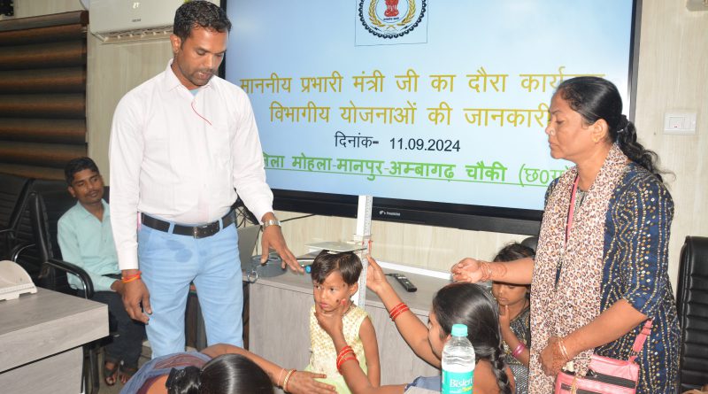 मोहला। जिले के आंगनबाड़ी केंद्रों में अध्यापक बच्चों के स्वास्थ्य पोषण पर अधिकारीगण नजर रखेंगे। पोषण माह के अंतर्गत अधिकारीगण आंगनबाड़ी केन्द्रों में पहुंचकर बच्चों की स्वास्थ्य, वजन का मुआयना करेगें। कलेक्टर श्री एस जयवर्धन ने इस संबंध में जिलाधिकारीयों को नोडल अधिकारी नियुक्त किया है। अधिकारियों को आंगनबाड़ी पहुंचकर पोषण माह के अंतर्गत आवश्यक कार्यवाही करने निर्देशित किया गया है। कलेक्टर श्री जयवर्धन ने आज जिला कार्यालय के सभा कक्ष में आंगनबाड़ी केंद्र के बच्चों की ऊंचाई एवं वचन नापने की विधि का प्रदर्शन किया गया। पोषण माह के अंतर्गत दिनांक 12 सितंबर से 23 सितंबर तक वजन त्यौहार मनाया जायेगा। इस दौरान सभी आंगनबाड़ी केन्द्रों में बच्चों की वजन व ऊंचाई की नाप की जाएगी। पोषण का स्तर भी परखा जाएगा। कलेक्टर ने जिला व ब्लॉक स्तरीय अधिकारी/कर्मचारीयों को नोडल अधिकारी नियुक्त करते हुए उन्हें निरीक्षण के दौरान सही वजन और ऊंचाई मापन करने कहा है।