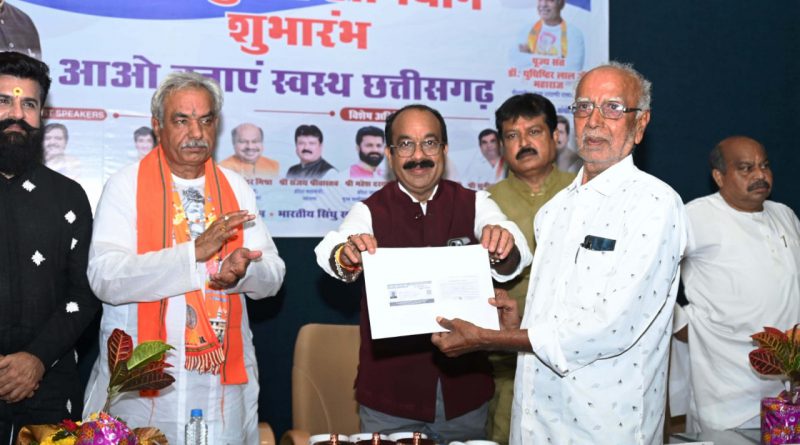 रायपुर। उप मुख्यमंत्री अरुण साव ने आज रायपुर के सिविल लाइन स्थित वृंदावन हॉल में शदाणी दरबार के संत डॉ. युधिष्ठिर लाल जी महाराज के मुख्य आतिथ्य में नशामुक्ति अभियान का शुभारंभ किया। छत्तीसगढ़ को स्वस्थ बनाने और युवाओं को नशे से मुक्त कराने रायपुर की विभिन्न संस्थाओं द्वारा नशामुक्ति अभियान प्रारंभ किया गया है। शुभारंभ कार्यक्रम के दौरान उप मुख्यमंत्री श्री अरुण साव, आमंत्रित अतिथियों और गणमान्य नागरिकों ने वृंदावन हॉल में प्रधानमंत्री श्री नरेन्द्र मोदी के ‘मन की बात’ कार्यक्रम का प्रसारण सुना। नशामुक्ति अभियान के शुभारंभ कार्यक्रम में 70 वर्ष से अधिक उम्र के बुजुर्गों के आयुष्मान कार्ड बनाकर वितरित भी किए गए।