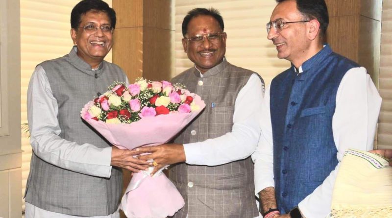 रायपुर। छत्तीसगढ़ के मुख्यमंत्री श्री विष्णु देव साय ने आज नई दिल्ली में केंद्रीय वाणिज्य एवं उद्योग मंत्री श्री पीयूष गोयल से मुलाकात की। बैठक में राज्य के औद्योगिक कॉरिडोर, अंतर्राष्ट्रीय एयर कार्गाे सुविधाओं के विकास और कई अन्य विकास से जुड़े मुद्दों पर चर्चा की गई। इस बैठक में केंद्रीय मंत्री ने छत्तीसगढ़ के विकास के लिए कई प्रस्तावों को मंजूरी देने का आश्वासन दिया है, जिससे राज्य को एक नई दिशा मिलेगी।