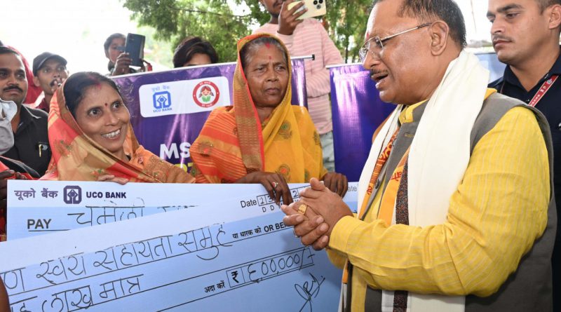 रायपुर। मुख्यमंत्री श्री विष्णु देव साय ने आज कैम्प कार्यालय बगिया से फरसाबहार विकास खंड के जोरण्डाझरिया ग्राम पंचायत अन्तर्गत ग्राम भेलवां में यूको बैंक की नई शाखा का शुभारंभ किया। इस अवसर पर मुख्यमंत्री ने 40 स्व सहायता समूह की महिला सदस्यों को 24 लाख का चेक प्रदान किया।