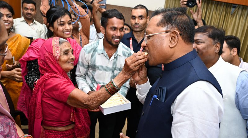 भिलाई से आई वयोवृद्ध श्रीमती दुलारबाई देवांगन के नाती और नाती बहु का चयन इस परीक्षा में होने की खुशी उनके चेहरे पर झलक रही थी। उन्होंने मुख्यमंत्री श्री विष्णु देव साय को अपने हाथों से मिठाई खिलाकर उनके प्रति आभार जताया। उन्होंने मुख्यमंत्री को बताया कि लंबे इंतजार के बाद उनके नाती श्री तिलक देवांगन और नाती बहु श्रीमती भारती देवांगन का चयन हुआ है। उन्होंने मुख्यमंत्री को हृदय से धन्यवाद दिया। चयनित अभ्यर्थियों के परिजनों और अभ्यर्थियों के चेहरे की खुशी देखते ही बन रही थी। मुख्यमंत्री श्री साय ने चयनित अभ्यार्थियों को बधाई और शुभकामनाएं देते हुए कहा इस वर्ष आप सबकी दीपावली अच्छी होगी। आप लोग अपने चयन की खुशियां मनाएं। दीपावली तथा राज्य स्थापना दिवस पर दीप जलाएं।