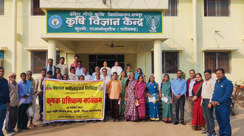 राजनांदगांव। नेशनल फर्टिलाइजर्स लिमिटेड (भारत सरकार का उपक्रम) द्वारा कृषि विज्ञान केन्द्र राजनांदगांव में कृषक प्रशिक्षण कार्यक्रम का आयोजन किया गया। प्रशिक्षण में कृषि विज्ञान केन्द्र की प्रमुख श्रीमती गुंजन झा ने किसानों को तिलहन फसलों में सल्फर के महत्व के बारे में जानकारी दी। उन्होंने फसलों को कीटों से बचाव के लिए नीम तेल के उपयोग, उर्वरक प्रबंधन, उद्यानिकी फसलों से सम्बंधित समस्याओं का निराकरण एवं जैविक कृषि के बारे में बताया। नेशनल फर्टिलाइजर्स लिमिटेड के क्षेत्रीय प्रबंधक एस के भगत द्वारा पीएसबी कल्चर के बारे में और फसलों में संतुलित खाद उपयोग करने की जानकारी दी। मृदा वैज्ञानिक श्रीमती अंजलि घृतलहरे ने किसानों को प्राकृतिक खेती में उपयोग होने वाले अवयव बनाने की विधि के बारे में बताया। डॉ. नूतन रामटेके ने पशुओं में होने वाले लंपी स्कीन रोग के निदान के बारे में जानकारी दी। डॉ. अतुल डांगे ने प्रधानमंत्री खाद्य प्रसंस्करण उद्ययन (पीएफएमई), कृषि यंत्रों का परिचालन एवं रख-रखाव के बारे में बताया। नेशनल फर्टिलाइजर्स लिमिटेड के जिला प्रभारी सत्यजित मोहंती द्वारा बेंटोनाइट सल्फर पैकेट एवं बायो फर्टिलाईजर का निःशुल्क वितरण कर उपस्थित कृषकों का आभार व्यक्त किया।