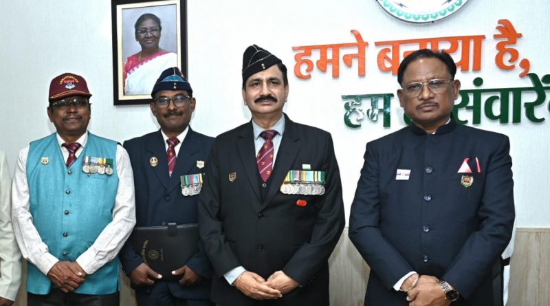 मुख्यमंत्री श्री साय से आज सशस्त्र सेना झंडा दिवस के अवसर पर संचालक, सैनिक कल्याण छत्तीसगढ़, ब्रिगेडियर श्री विवेक शर्मा ने उनके निवास कार्यालय में मुलाकात की और उन्हें लेपल पिन लगाकर सशस्त्र सेना झंडा दिवस की शुभकामनाएं दीं। मुख्यमंत्री ने भूतपूर्व सैनिकों और शहीदों के परिवारों के कल्याण के लिए सशस्त्र सेना झंडा दिवस निधि में अपना योगदान दिया। इस अवसर पर मुख्यमंत्री के सचिव श्री राहुल भगत भी उपस्थित थे।