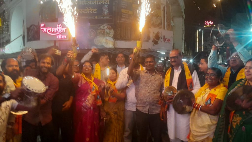 सर्वधर्म व समाज प्रमुखों, महाकाल भक्तों की भीड़ तथा भव्य आतिशबाजी के साथ महाकाल चौक का महापौर हेमा देशमुख ने किया अनावरण
