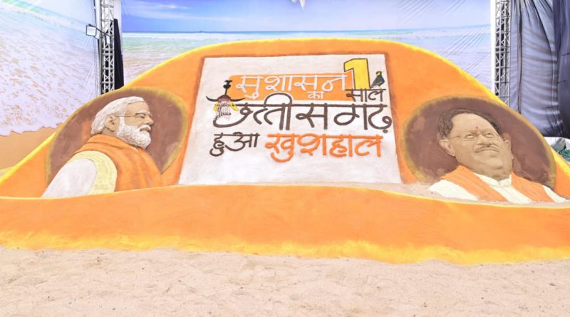 सैंड आर्ट के माध्यम से दिखी विष्णु सरकार के सुशासन और विकास की झलक
