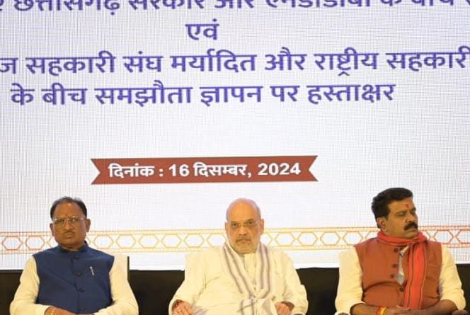 रायपुर। छत्तीसगढ़ ने सहकारी विकास और ग्रामीण अर्थव्यवस्था के सशक्तिकरण की दिशा में ऐतिहासिक कदम उठाया है। केंद्रीय गृह और सहकारिता मंत्री श्री अमित शाह और मुख्यमंत्री श्री विष्णु देव साय की उपस्थिति में आज दो महत्वपूर्ण समझौता ज्ञापनों पर हस्ताक्षर किए गए। यह पहल प्रदेश में डेयरी और वन उपज विकास को गति देने के साथ ही आदिवासी समुदाय और किसानों के उत्थान की दिशा में एक महत्वपूर्ण मील का पत्थर साबित होगी।