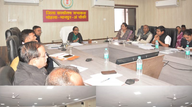 मोहला। कलेक्टर श्रीमती तुलिका प्रजापति की अध्यक्षता में कलेक्टर कार्यालय के सभा कक्ष में समय.सीमा की बैठक आयोजित की गई। बैठक में जिले के विभिन्न विभागों के कार्यों की प्रगति की समीक्षा की गई और लंबित प्रकरणों के शीघ्र निपटारे के निर्देश दिए गए। कलेक्टर ने सभी विभागीय अधिकारियों को ग्रामीण क्षेत्रों में शासन की कल्याणकारी योजनाओं का लाभ जन-जन तक पहुँचाने के लिए आवश्यक दिशा.निर्देश दिए।