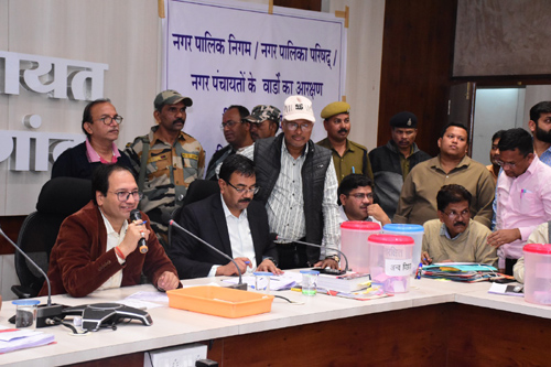 जिले के नगरीय निकायों के निर्वाचन के लिए वार्डों के आरक्षण की कार्रवाई की गई