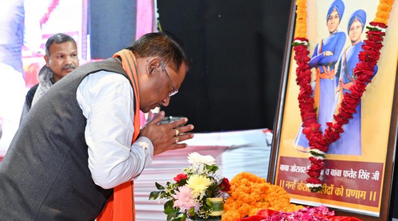 रायपुर। गुरु गोविंद सिंह जी के वीर साहिबजादों बाबा जोरावर सिंह जी और बाबा फतेह सिंह जी के अमर बलिदान की कहानी अब छत्तीसगढ़ के स्कूली बच्चों को पढ़ाई जाएगी। वीर साहिबजादों के वीरता की यह कहानी देश के युवाओं को साहस के साथ आगे बढ़ाने के लिए प्रेरित करेगी। मुख्यमंत्री श्री विष्णु देव साय ने आज वीर बाल दिवस के अवसर पर राजधानी रायपुर के मेडिकल कॉलेज सभागार में आयोजित बौद्धिक संगोष्ठी को संबोधित करते हुए यह बड़ी घोषणा की। उन्होंने गुरु गोविंद सिंह और वीर साहिबजादों का पुण्य स्मरण कर कहा कि हमें उनकी शिक्षाओं को अपनाना चाहिए और नई पीढ़ी को उनके आदर्शों से जोड़ना चाहिए। इस दौरान मुख्यमंत्री ने वीर साहिबजादों के जीवनी पर आधारित एनिमेटेड फिल्म भी देखी।