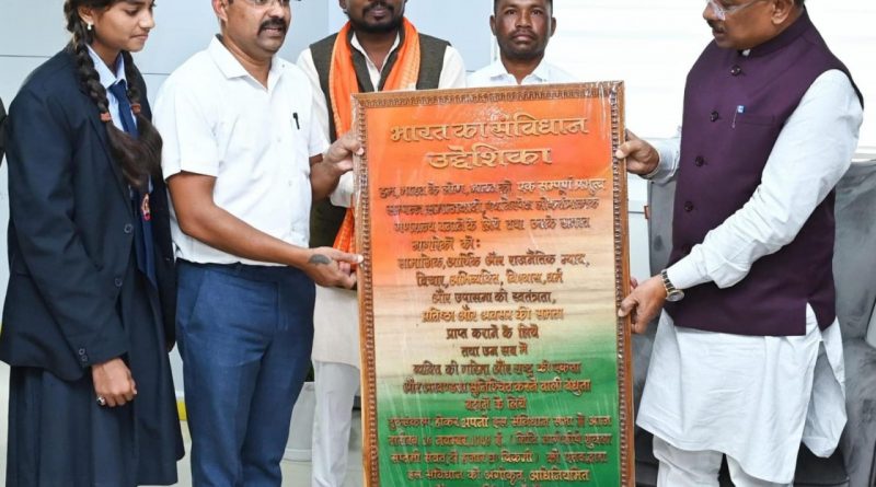 स्कूली बच्चों द्वारा तैयार लकड़ी की नेम प्लेट और पोट्रेट उपहार में पाकर मुख्यमंत्री साय ने जताई खुशी
