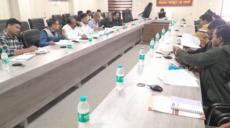 मोहला। कलेक्टर श्रीमती तुलिका प्रजापति के निर्देशानुसार अपर कलेक्टर श्री विजेंद्र सिंह पाटले ने आज जिला कार्यालय के सभा कक्ष में विभागों में लंबित पेंशन प्रकरण, अनुकंपा नियुक्ति, समयमान वेतन, अनाधिकृत रूप से अनुपस्थित कर्मचारियों के संबंध में लंबित प्रकरणों की समीक्षा बैठक ली। बैठक में उन्होंने सभी विभागों से बारी-बारी से लंबित प्रकरणों की जानकारी लेते हुए विस्तृत समीक्षा की।