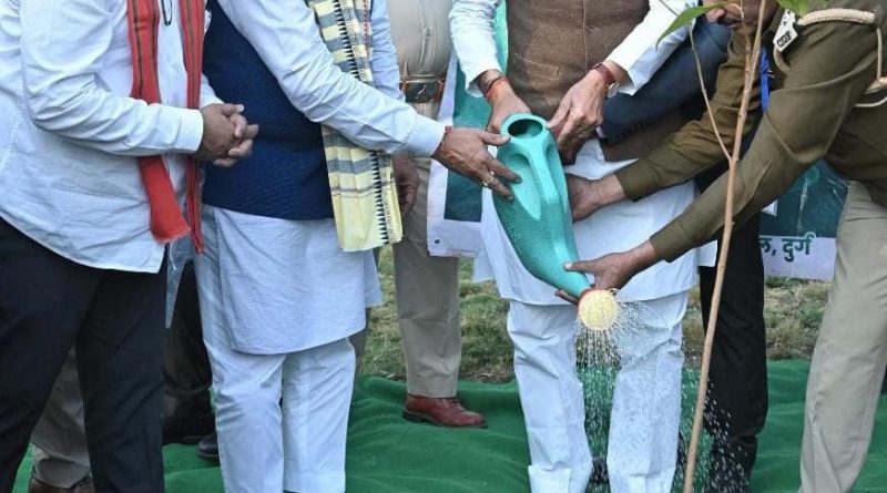 रायपुर। केंद्रीय कृषि एवं ग्रामीण विकास मंत्री श्री शिवराज सिंह चौहान ने छत्तीसगढ़ के मुख्यमंत्री श्री विष्णुदेव साय के साथ आज दुर्ग जिले के नगपुरा स्थित रेस्ट हाऊस में वृक्षारोपण कर छत्तीसगढ़ राज्य में एक पेड़ मां के नाम अभियान को बढ़ावा देने के साथ ही लोगों को पर्यावरण संरक्षण का संदेश दिया। इस अवसर पर उपमुख्यमंत्री श्री विजय शर्मा सहित अन्य जनप्रतिनिधि मौजूद थे।