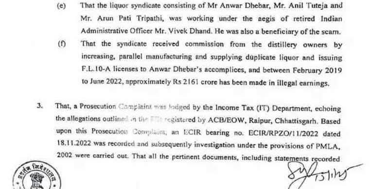 प्रकरण में पूर्व आबकारी मँत्री कवासी लखमा गिरफ्त में ले लिए गए. ईडी ने कहा है कि उन्हें प्रतिमान दो करोड़ रूपए दिए जाते थे.