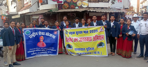राजनांदगांव। राष्ट्रीय सड़क सुरक्षा माह के 30वें दिन पुलिस अधीक्षक मोहित गर्ग के निर्देशन एवं अतिरिक्त पुलिस अधीक्षक राहुल देव शर्मा के मार्गदर्शन में रनि अरविंद साहू, निरीक्षक अजय खेस एवं यातायात टीम द्वारा शहर के चौक-चौराहों में नुक्कड़ नाटक के माध्यम से प्रतिदिन हो रही सड़क दुर्घटनाओं के देखते हुए यातायात नियमों का पालन करने, शराब सेवन कर वाहन न चलाने, ओव्हर स्पीड, ओव्हर लोड, रांग साईड, बिना सीट बेल्ट वाहन नहीं चलाने यातायात आम लोगों से अपील की गई। नुक्कड़ नाटक कार्यक्रम के दौरान राष्टि्रय सेवा योजना एवं कार्यक्रम अधिकारी विजय मानिकपुरी एवं कलाकार उदय देवांगन, लिंकन, दिनेश साहू, भूपेन्द्र मंडावी, श्रद्धा, कंचन, परमेश्वर, डिंपल, गणेश यदु, गरिमा, शशि, प्रिया, तेजेन्द्र साहू, निकिता गजभिए, केशव साहू, कौशल साहू एवं बीएड के प्रथम एवं चतुर्थ सेमेस्टर विद्यार्थी उपस्थित थे। कार्यक्रम के दौरान लगभग 1200 लोग लाभान्वित हुए।