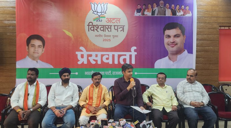 राजनांदगांव। भारतीय जनता पार्टी ने छत्तीसगढ़ में आगामी नगरीय निकाय चुनाव के लिए अपना घोषणापत्र ‘अटल विश्वास पत्र’ जारी कर दिया है। राजनांदगांव के पूर्व सांसद एवं नगर निगम चुनाव संयोजक अभिषेक सिंह ने घोषणापत्र पर चर्चा करते हुए कहा की यह घोषणापत्र अटल जी की 100 वीं जयंती और ‘अटल निर्माण वर्ष’ के अवसर पर, उनके योगदान और राष्ट्र निर्माण के दृष्टिकोण को सम्मानित करते हुए समर्पित किया गया है। घोषणापत्र को तैयार करने के लिए हमने प्रदेशव्यापी ‘सुझाव संग्रहण अभियान’ चलाया, जिसमें जनता से उनके सुझाव और अपेक्षाएं मांगी गईं। हमें हज़ारो सुझाव प्राप्त हुए, जिनमें से महत्वपूर्ण सुझावों को हमारी घोषणापत्र समिति ने शामिल किया है। यह घोषणापत्र जनता की आकांक्षाओं और हमारी पार्टी के सेवा भाव का प्रतीक है, घोषणापत्र के बारे में बात करने से पहले, मैं आप सभी का ध्यान इस साल के ऐतिहासिक बजट की ओर भी दिलाना चाहता हूँ। यह बजट हर वर्ग का ध्यान रखते हुए बनाया गया है,किसानों से लेकर MSME तक, युवाओं के लिए कॉलेजों में सीटें बढ़ाने और स्टार्टअप्स की फंडिंग की बात हो या गिग वर्कर्स के लिए सामाजिक सुरक्षा की पहल। साथ ही, देश की विकास दर को बनाए रखते हुए, मध्यम वर्ग को टैक्स राहत देकर एक ऐतिहासिक कदम उठाया गया है। यशस्वी प्रधानमंत्री श्री नरेंद्र मोदी जी के नेतृत्व में और आदरणीय वित्त मंत्री श्रीमती निर्मला सीतारमण जी के मार्गदर्शन में, यह बजट एक नया कीर्तिमान स्थापित करता है। एक समय था जब कांग्रेस शासन में 2.5 लाख से ऊपर की आय पर कर चुकाना पड़ता था, लेकिन अब 12 लाख रुपये तक की आय पर शून्य कर लगाकर ऐतिहासिक राहत दी गई है। इसका सीधा लाभ मध्यम वर्ग को मिलेगा—लोग अपने खर्च बढ़ा पाएंगे, अपनी निजी जरूरतों को पूरा कर पाएंगे और निवेश में जुट सकेंगे। यह बजट देश के नागरिकों के आत्मनिर्भर बनने की दिशा में एक बड़ा कदम है। छत्तीसगढ़ भाजपा आप सभी छत्तीसगढ़वासियों की ओर से प्रधानमंत्री जी और वित्त मंत्री जी का हृदय से धन्यवाद करती है अब, मैं आपको हमारे घोषणापत्र ‘अटल विश्वास पत्र’ के बारे में बताना चाहता हूँ, जो छत्तीसगढ़ के उज्ज्वल भविष्य की आधारशिला रखने जा रहा है।