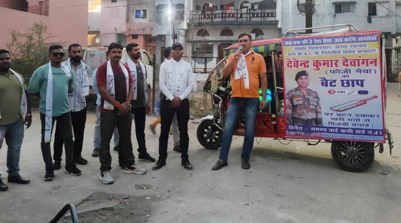 जी हाँ . . . यहाँ बात उस फौजी भाई की हो रही है जिसे सीमा जितनी पसँद थी उतनी ही पसँद चुनाव मैदान है. वार्ड 41 से देवेन्द्र कुमार देवांगन नामक एक शिक्षित युवा इस बार पार्षद पद के लिए मैदान में उतरा है.