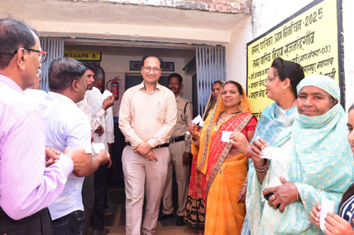 राजनांदगांव। कलेक्टर एवं जिला निर्वाचन अधिकारी संजय अग्रवाल ने आज नगरीय निकाय निर्वाचन के अंतर्गत नगर पालिक निगम राजनांदगांव क्षेत्र के विभिन्न मतदान केन्द्रों का निरीक्षण किया। कलेक्टर संजय अग्रवाल ने कंट्रोल रूम, म्युनिसिपल स्कूल, मोतीपुर स्कूल, बजरंगपुर नवागांव स्कूल स्थित मतदान केन्द्रों का निरीक्षण किया। कलेक्टर श्री अग्रवाल ने मतदान केन्द्रों के पीठासीन अधिकारियों से मतदान प्रतिशत के संबंध में जानकारी ली। उन्होंने पीठासीन अधिकारियों को छत्तीसगढ़ राज्य निर्वाचन आयोग द्वारा दिए गए सभी आवश्यक दिशा-निर्देशों का पालन सुनिश्चित करने कहा। मतदान केन्द्र में पेयजल एवं छांव सहित अन्य सुविधाओं के संबंध में जानकारी ली। उन्होंने मतदान केन्द्रों में मतदान करने के लिए लाईन में लगी महिलाओं एवं युवाओं से बात की। उन्होंने महिलाओं और युवाओं को मतदान कर मजबूत लोकतंत्र बनाने के लिए प्रोत्साहित किया।