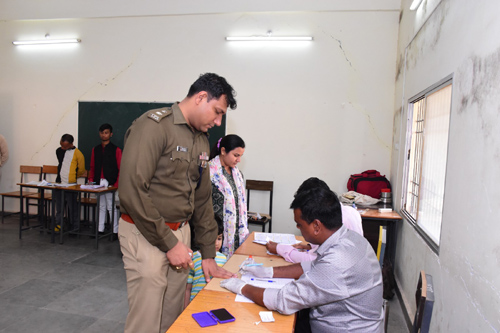 पुलिस अधीक्षक अपनी पत्नी के साथ मतदान केन्द्र पहुंचकर किया मतदान