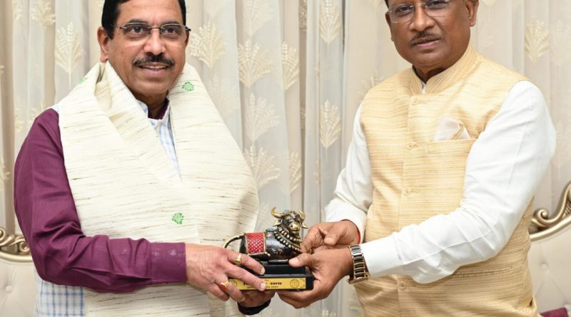 मुख्यमंत्री विष्णुदेव साय ने केंद्रीय मंत्री प्रहलाद जोशी का किया आत्मीय स्वागत