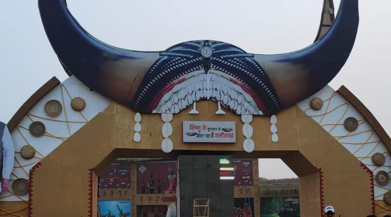 छत्तीसगढ़ पैवेलियन का प्रवेश द्वार बस्तर की पहचान गौर मुकुट से सुशोभित था। ये दूर से ही लोगों को अपनी तरफ आकर्षित कर लेता था। भीतर प्रवेश करते ही छत्तीसगढ़ महतारी की प्रतिमा छत्तीसगढ़ की ममतामयी पहचान को परिलक्षित करती थी। इसके साथ ही राज्य की चार ईष्ट देवियों ( मां महामाया, मां दंतेश्वरी, मां बम्लेश्वरी और मां चंद्रहासिनी) की तस्वीरों के आगे लोगों के सिर श्रद्धा से झुक जाते थे। प्रदर्शनी में राज्य सरकार की योजनाओं को जानने के लिए लोग आतुर दिखते थे। प्रदर्शनी में सिरपुर, कुतुबमीनार से ऊंचे जैतखाम, भारत का नियाग्रा कहे जाने वाले चित्रकोट वाटरफाल, आधुनिक शहर नया रायपुर के बारे मे जानकर लोग स्तब्ध रह जाते थे।