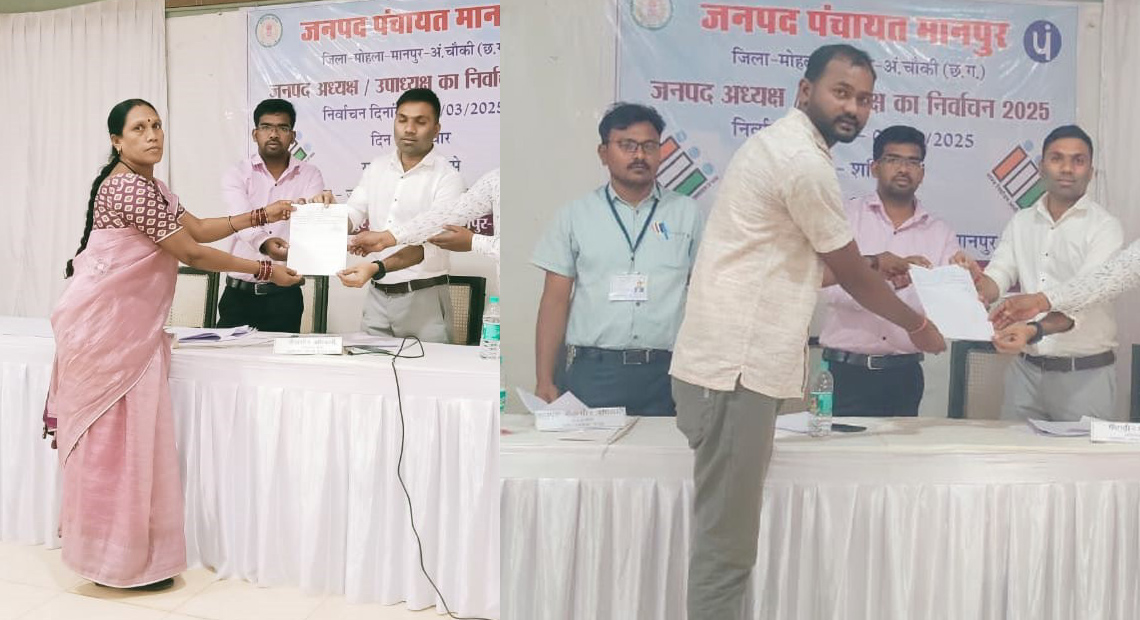 मोहला। स्थानीय पंचायत निर्वाचन के अंतर्गत जनपद पंचायत मानपुर के लिए अध्यक्ष एवं उपाध्यक्ष पद का निर्वाचन संपन्न हुआ। पीठासीन अधिकारी श्री अमित नाथ योगी ने बताया कि जनपद पंचायत के लिए निर्वाचित जनपद सदस्यों ने अध्यक्ष व उपाध्यक्ष का निर्वाचन किया। जनपद पंचायत के लिए श्रीमती पुष्पा मंडावी निर्विरोध अध्यक्ष निर्वाचित हुई है। इसी प्रकार श्री देवानंद कौशिक उपाध्यक्ष निर्वाचित हुआ है।
