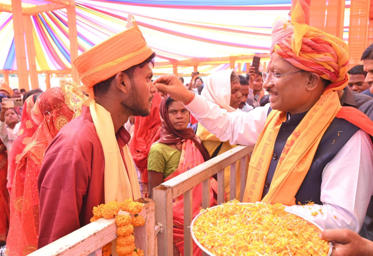 मुख्यमंत्री श्री साय ने नवविवाहित जोड़ों पर की पुष्प वर्षा