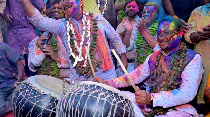 मुख्यमंत्री ने बजाया नगाड़ा, रंगों के उल्लास में झूमे पत्रकार