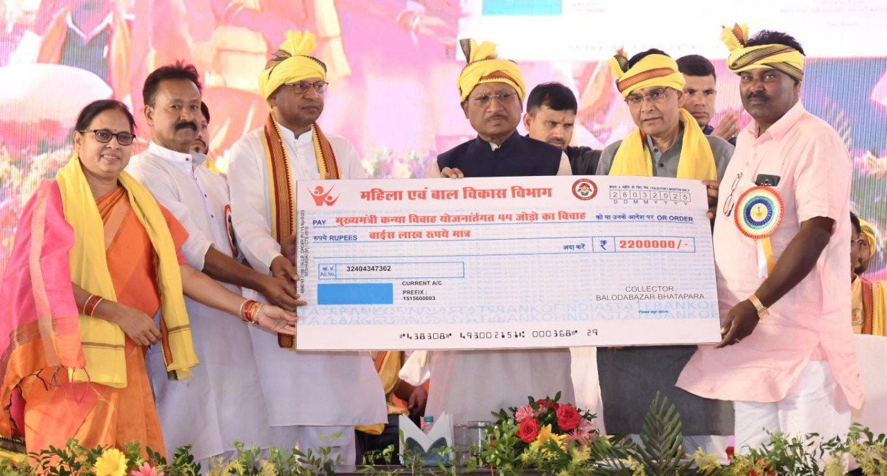 मुख्यमंत्री श्री विष्णु देव साय ने मुख्यमंत्री कन्या विवाह योजना के अंतर्गत नवविवाहित जोड़ों को आर्थिक सहायता राशि का चेक और आवश्यक विवाह सामग्री प्रदान की। उन्होंने प्रत्येक जोड़े को आशीर्वाद देते हुए उनके सुखद एवं समृद्ध दांपत्य जीवन की शुभकामनाएँ दीं। इस अवसर पर उन्होंने कहा कि सरकार का उद्देश्य केवल सहायता देना नहीं, बल्कि सामाजिक जिम्मेदारी में भागीदारी निभाना है। यह योजना आर्थिक रूप से कमजोर परिवारों के लिए एक संबल बनकर उभरी है, जिससे वे गरिमा के साथ अपने परंपरागत रीति-रिवाजों के अनुसार विवाह सम्पन्न कर सकें।