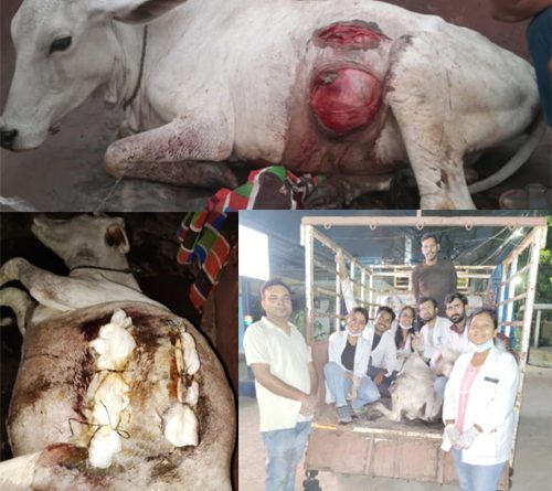 सड़क हादसे में गाय जख्मी, बजरंग दल एवं पशु चिकित्सालय के प्रयासों से हुआ सफल उपचार