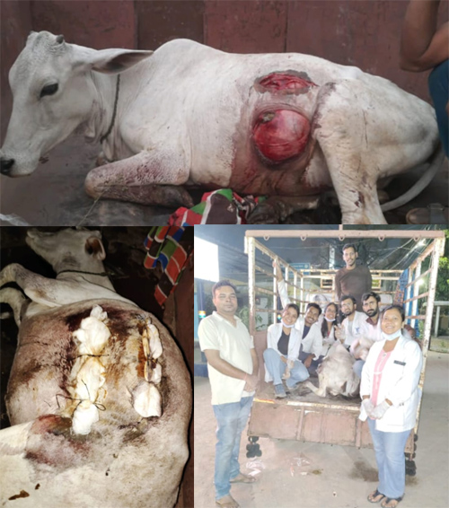 बजरंग दल के गौरक्षा जिला प्रमुख अंशुल कसार ने बताया कि एक्सीडेंट की सूचना मिलते ही तत्काल बजरंग दल गठुला के पृथ्वी साहू, नवीन साहू, भीष्म एवं नरेन्द्र साहू आदि गौ सेवकों एवं ग्रामवासियों के द्वारा गौ को राजनांदगांव लाने की व्यवस्था की गई और जिला पशु चिकित्सालय राजनांदगांव लाया गया एवं सफल उपचार किया गया है, यहां के प्रभारी चिकित्सक डॉक्टर तरूण रामटेके एवं इंटर्नशिप के स्टूडेंट के द्वारा समय रहते गाय के पेट को सूचर कर एंटीबायोटिक और पेन किलर दिया गया, जिससे अब गाय खतरे से बाहर है और नियमित देख-रेख एवं 4-5 दिन एंटीबायोटिक पेन किलर देने से गाय पूरी तरह से ठीक हो जाएगा इलाज सफल रहा।