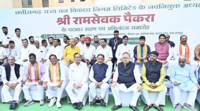 मुख्यमंत्री विष्णु देव साय छत्तीसगढ़ राज्य वन विकास निगम के अध्यक्ष रामसेवक पैकरा के पदभार ग्रहण समारोह में हुए शामिल
