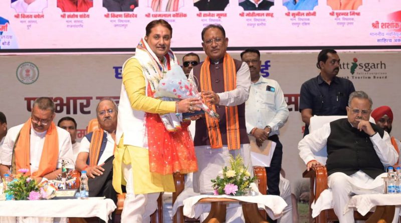 रायपुर। मुख्यमंत्री श्री विष्णु देव साय आज रायपुर के पंडित दीनदयाल उपाध्याय ऑडिटोरियम में छत्तीसगढ़ पर्यटन मंडल के नवनियुक्त अध्यक्ष श्री नीलू शर्मा एवं छत्तीसगढ़ साहित्य अकादमी के नवनियुक्त अध्यक्ष श्री शशांक शर्मा के पदभार ग्रहण और अभिनंदन समारोह में शामिल हुए। छत्तीसगढ़ विधानसभा के अध्यक्ष डॉ. रमन सिंह ने समारोह की अध्यक्षता की। मुख्यमंत्री श्री साय ने राजकीय गमछा, पुष्प गुच्छ और स्मृति चिन्ह भेंटकर दोनों अध्यक्षों का अभिनंदन किया। विशिष्ट अतिथियों और गणमान्य नागरिकों से भरे खचाखच ऑडिटोरियम में पदभार ग्रहण करने के बाद दोनों नवनियुक्त अध्यक्षों को सभी लोगों ने बधाई और शुभकामनाएं दीं। उप मुख्यमंत्री श्री अरुण साव, कृषि मंत्री श्री रामविचार नेताम, वन मंत्री श्री केदार कश्यप तथा खाद्य मंत्री श्री दयालदास बघेल भी समारोह में शामिल हुए।