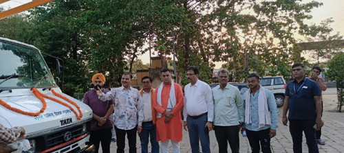 महापौर मधुसूदन यादव ने नए टॉवर लोडर का पूजा कर चालक को सौंपी चाबी
