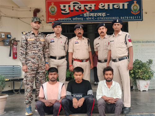 उक्त कार्यवाही में थाना प्रभारी डोंगरगढ़ जितेन्द्र वर्मा, उप निरीक्षक राजेश कुमार, उप निरीक्षक भूषण चंद्राकर, आरक्षक कमल कुमार, प्रयांश सिंह, चंद्रकात सोनी, लक्ष्मी कंवर, योगेश साहू का विशेष योगदान रहा है।