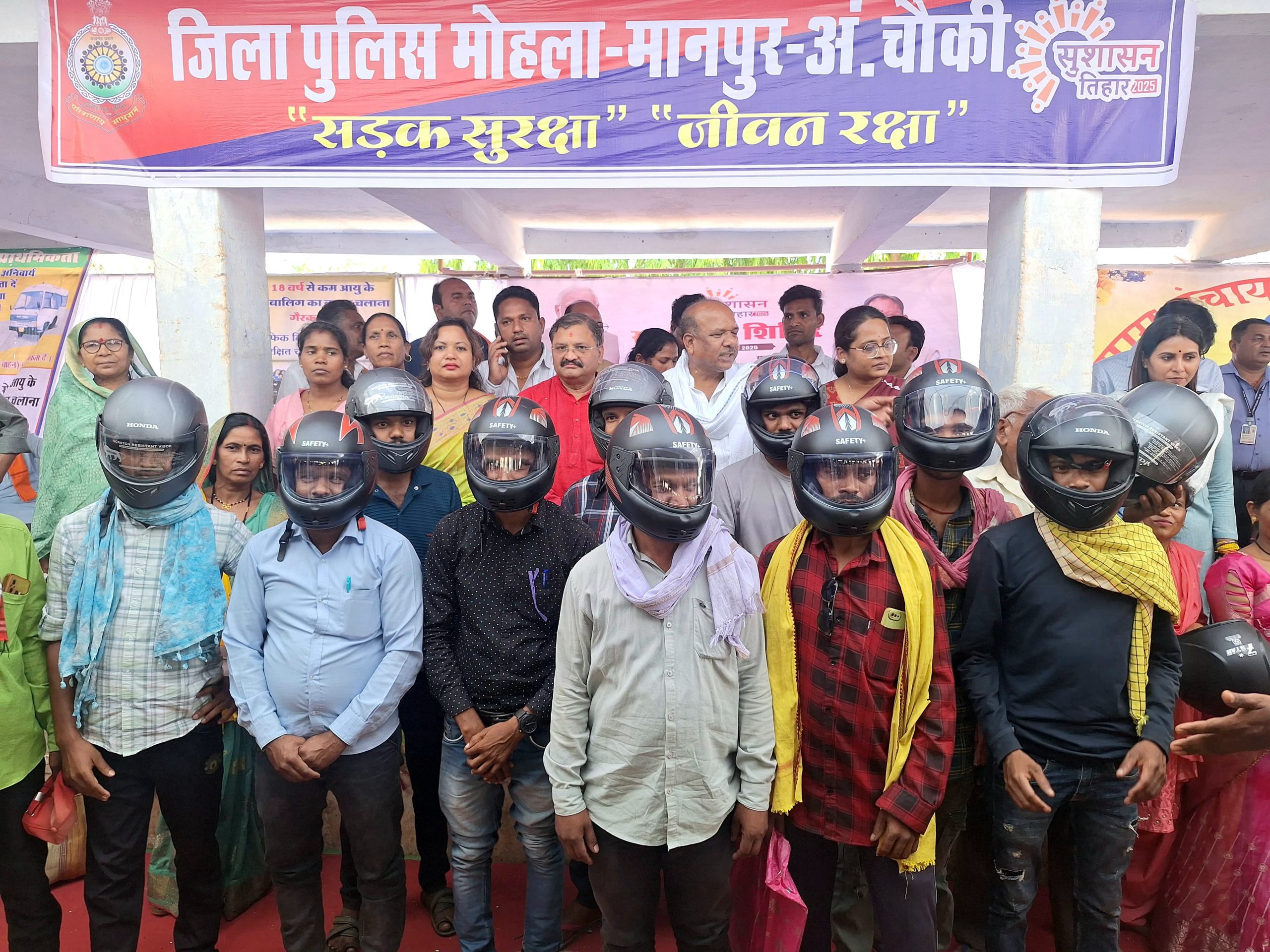 जिला मोहला मानपुर अंबागढ़ चौकी के पुलिस प्रशासन द्वारा आज अभिनव पहल करते हुए भर्रीटोला में आयोजित समाधान शिविर में 21 मोटरसाइकिल चालकों को निशुल्क हेलमेट वितरित किया गया। पुलिस प्रशासन ने हेलमेट के प्रति जागरूकता लाने के उद्देश्य से कहा कि वाहन चालकों को अनिवार्य रूप से हेलमेट लगाकर ही वाहन चलाना चाहिए। पुलिस प्रशासन ने कहा कि सड़क दुर्घटना में अधिकांश मौतें सर में चोट लगने से होती है। जानकारी के अभाव में कई मोटरसाईकिल चालक हेलमेट का उपयोग नहीं करते हैं। जिसके चलते सड़क दुर्घटना होने और सिर में चोट लगने से आकस्मिक मृत्यु हो जाती है। आकस्मिक मौत हो जाने से यह घटना संपूर्ण परिवार के लिए जीवन भर के लिए अत्यंत पीड़ादायक होता है। पुलिस प्रशासन द्वारा जागरूकता संदेश देते हुए नागरिकों से अपील किया कि हर मोटरसाइकिल चालक अनिवार्य रूप से मोटरसाइकिल चलाने के दौरान हेलमेट का उपयोग करें।