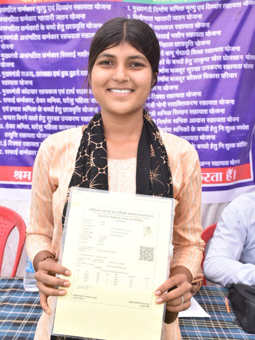 राजनांदगांव। शासन की मुख्यमंत्री नोनी सशक्तिकरण सहायता योजना श्रमिकों के लिए बहुत उपयोगी साबित हो रही है। इसकी एक बानगी दिखाई दी, राजनांदगांव विकासखंड के नगर पंचायत घुमका में आयोजित समाधान शिविर में। जहां ग्राम बरबसपुर की हिमांशी वर्मा को मुख्यमंत्री नोनी सशक्तिकरण सहायता योजना के तहत 20 हजार रूपए की राशि प्राप्त होने पर उनके चेहरे पर खुशी छलक रही थी। उन्होंने बताया कि उनकी माता श्रीमती धनेश्वरी वर्मा मजदूरी का कार्य करती हैं। उनका श्रम विभाग में पंजीयन होने के कारण 20 हजार रूपए की राशि प्राप्त हो रही है। उन्होंने प्रसन्नता जाहिर करते हुए बताया कि प्राप्त राशि का उपयोग वे अपनी पढ़ाई के लिए करेंगी। वे अपनी आगे की पढ़ाई जारी रखना चाहती हंै और एलएलबी कर अधिवक्ता बनना चाहती हैं। उन्होंने सुशासन तिहार की प्रशंसा करते हुए कहा कि समाधान शिविर में जनसामान्य की समस्याओं का निराकरण हो रहा है। उन्होंने नोनी सशक्तिकरण योजना के तहत राशि प्राप्त होने पर मुख्यमंत्री विष्णु देव साय के प्रति आभार व्यक्त किया। उल्लेखनीय है कि मुख्यमंत्री नोनी सशक्तिकरण सहायता योजना अंतर्गत 3 वर्ष पूर्व पंजीकृत निर्माण श्रमिकों के प्रथम दो अविवाहित पुत्रियों जिनकी आयु 18 वर्ष से 21 वर्ष एवं कम से कम कक्षा 10वीं उत्तीर्ण होनी चाहिए। इस योजना के तहत 20 हजार रूपए की एकमुश्त सहायता राशि दी जाती है।