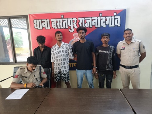 आरोपियों में रमेश उर्फ बादल पिता बालकिशन सिन्हा, उम्र-33 साल, निवासी-चौखड़िया पारा हनुमान मंदिर के पास थाना, बसंतपुर, मो. अफजल खान पिता मो. युसुफ खान, उम्र-23 साल, साकिन- प्रभात नगर, थाना-बसंतपुर, सेवक राम उर्फ अज्जू पिता बल्ला साहू, उम्र-19 साल, साकिन-शंकरपुर, पुलिस चौकी-चिखली एवं चंदन उर्फ सोहन गणवीर पिता स्व. संतोष गणवीर, उम्र-21 साल, साकिन- प्रभात नगर, थाना-बसंतपुर शामिल है।