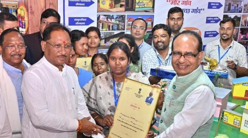 रायपुर। अम्बिकापुर में ‘‘मोर आवास मोर अधिकार’’ कार्यक्रम के अवसर पर छत्तीसगढ़ राज्य ग्रामीण आजीविका मिशन अंतर्गत विभिन्न क्षेत्रों में उल्लेखनीय कार्य करने वाली स्व-सहायता समूहों की दीदियों को सम्मानित किया गया। केंद्रीय ग्रामीण विकास एवं कृषि मंत्री श्री शिवराज सिंह चौहान तथा मुख्यमंत्री श्री विष्णु देव साय द्वारा इन महिलाओं को प्रशस्ति-पत्र एवं स्मृति चिन्ह प्रदान कर सम्मानित किया गया।