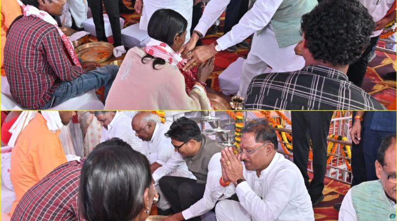 केंद्रीय मंत्री शिवराज सिंह, मुख्यमंत्री विष्णु देव साय और अन्य मंत्रियों ने पीएम आवास के हितग्राहियों के पाँव पखारे