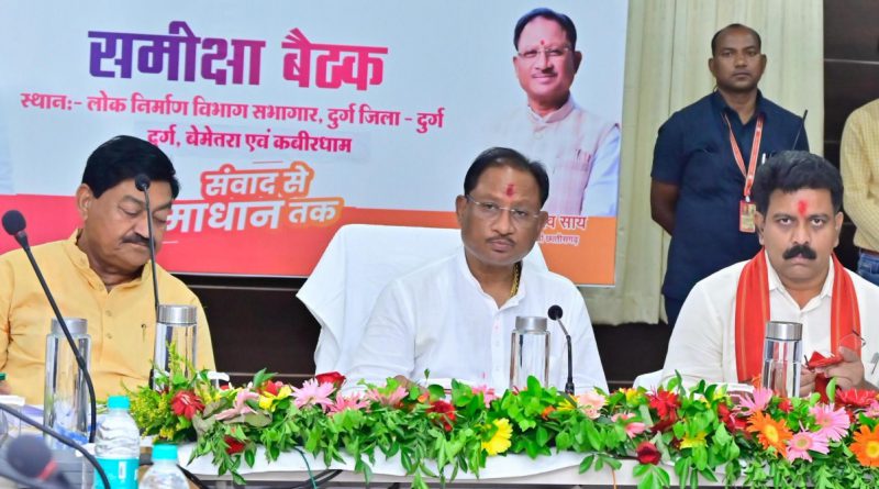 रायपुर। मुख्यमंत्री श्री विष्णुदेव साय ने आम लोगों की राजस्व संबंधी समस्याओं के तेजी से निराकरण करने के निर्देश कलेक्टरों को दिए हैं। मुख्यमंत्री ने राजस्व मामलों के निराकरण के लिए कलेक्टरों को नियमित रूप से राजस्व न्यायालयों का संचालन करने और इसके लिए दिन भी निर्धारित करने को कहा है। मुख्यमंत्री ने कहा कि सुशासन तिहार का जायजा लेने के लिए अब तक 19 जिलों का औचक निरीक्षक और समाधान शिविर में शामिल हो चुके हैं। जनता से मिले फीडबैक से इस बात का गर्व है कि हमारी सरकार की योजनाओं और कार्यक्रमों का लाभ उन लोगों तक पहुंच रहा है, जिनके लिए सरकार ने योजनाएं बनाई है। मुख्यमंत्री ने अधिकारियों से कहा कि विकसित छत्तीसगढ़ के निर्माण के लिए टीम वर्क के साथ काम करना ही हमारी प्रतिबद्धता होनी चाहिए। मुख्यमंत्री आज दुर्ग जिले में आकस्मिक निरीक्षण, समाधान शिविर में शामिल होने के बाद दुर्ग जिला मुख्यालय में कवर्धा, बेमेतरा और दुर्ग जिले के अधिकारियों की बैठक को संबोधित कर रहे थे।