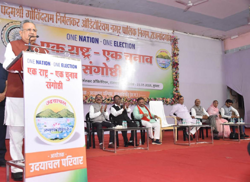 महापौर मधुसूदन यादव ने कहा कि वन नेशन वन इलेक्शन देश के मूल्यों और विचारों पर आधारित है, इसकी आज नितांत आवश्यकता है। उन्होंने कहा कि बार-बार निर्वाचन कार्यक्रम होने पर धन एवं मानव संसाधन पर दबाव पड़ता है, इसके लिए जरूरी है कि लोकसभा एवं विधानसभा के निर्वाचन एक साथ कराएं जाएं। केन्द्र सरकार द्वारा लोकसभा में 129वें संविधान संशोधन के तहत बिल प्रस्तुत किया गया है। यह देश के हित में है, इससे धन एवं समय की बचत के साथ मानव ऊर्जा की बचत होगी और सबके कल्याण के लिए योजनाएं बनाकर कार्य संपादित हो सकेगा। पद्मश्री डॉ. पुखराज बाफना ने संगोष्ठी में भाग लेते हुए कहा कि यह राष्ट्र चिंतन एवं जनजागरण की संगोष्ठी है। एक राष्ट एक चुनाव से जहां समय एवं अर्थ की बचत होगी, वहीं चुनावी आवृत्ति में कमी आएंगी। वित्तीय बचत के साथ अन्य व्यय रोकने में मदद मिलेगी। पद्मश्री फूलबासन यादव ने कहा कि वन नेशन वन इलेक्शन देश के लोकतंत्र मजबूती प्रदान करेगा। उन्होंने कहा कि बार-बार चुनाव होने से आम जनता को परेशानी होती है। एक साथ चुनाव होने पर समय और धन की बचत होगी, वहीं गांव के गरीब लोगों के लिए कल्याणकारी योजनाएं बनेगी। इस अवसर पर संगोष्ठी में अधिवक्ता एचबी गाजी ने भी अपने विचार प्रकट किए और वन नेशन वन इलेक्शन के प्रस्ताव पर सहमति जतायी। इस अवसर पर जिला पंचायत अध्यक्ष श्रीमती किरण वैष्णव, पर्यटन मंडल के अध्यक्ष नीलू शर्मा, जिला सहकारी केन्द्रीय बैंक मर्यादित के अध्यक्ष सचिन बघेल, कोमल सिंह राजपूत सहित अन्य जनप्रतिनिधि एवं बड़ी संख्या में नगरवासी उपस्थित थे।