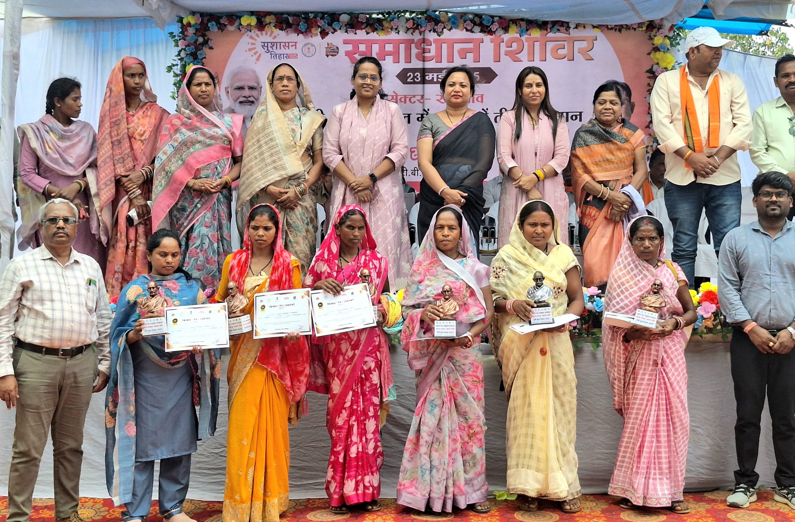 शिविर में जिला पंचायत की अध्यक्ष श्रीमती नम्रता सिंह ने कार्यक्रम को संबोधित करते हुए कहा कि छत्तीसगढ़ शासन मुख्यमंत्री श्री विष्णुदेव साय के नेतृत्व में जन-जन की समस्याओं का निराकरण करने के उद्देश्य से समाधान शिविर आयोजित किया जा रहा है। समाधान शिविर के माध्यम से ग्रामीणजनों को शासन द्वारा संचालित विभागीय योजनाओं से लाभान्वित किया जा रहा है। उन्होंने आगे कहा कि व्यक्ति की व्यक्ति की जन्म से लेकर मृत्यु तक अनेक योजनाएं चलाई जा रही है। उन्होंने इस अवसर पर ग्रामीणों को प्रेरित करते हुए कहा कि जागरूकता के साथ अपनी समस्याओं को अधिकारियों के समक्ष रखें। उन्होंने आगे कहा कि महिलाओं को सशक्त और समाज के मुख्यधारा से जोड़ने के उद्देश्य से महतारी वंदन योजना संचालित की जा रही है। जिससे आज महिलाएं आत्मनिर्भरता की ओर आगे बढ़ रही है।