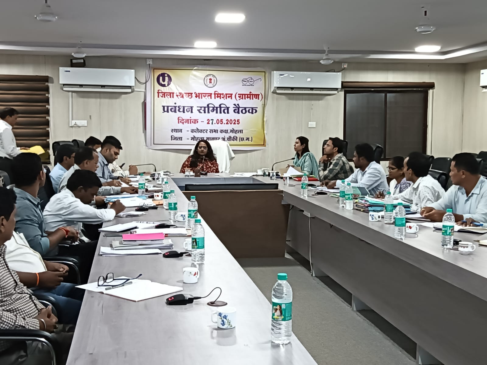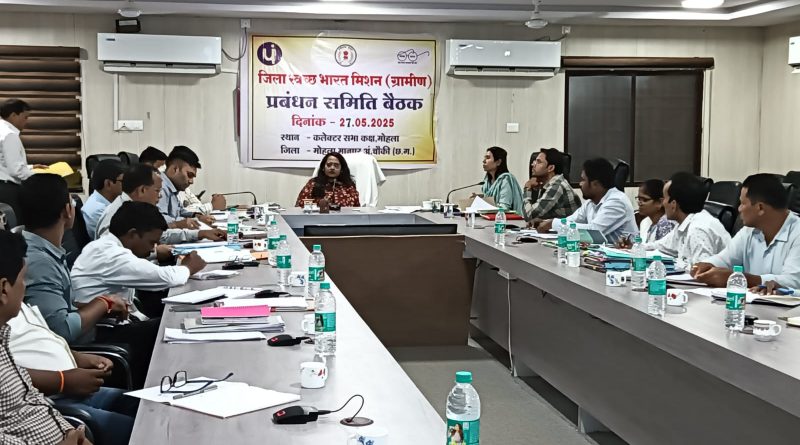 मोहला। जिला स्वच्छ भारत मिशन ग्रामीण प्रबंधन समिति की बैठक कलेक्टर श्रीमती तुलिका प्रजापति की अध्यक्षता में कार्यालय कलेक्ट्रेट सभाकक्ष मोहला जिला मोहला मानपुर अंबागढ़ चौकी में आयोजित की गई। कलेक्टर ने वित्तीय वर्ष 2025-26 के अनुसार स्वच्छ भारत मिशन ग्रामीण की कार्य योजना तैयार करने एवं जिन सामुदायिक शौचालय में पानी की व्यवस्था नहीं है उन सामुदायिक शौचालयों तथा ठोस एवं तरल अपशिष्ट प्रबंधन शेड में भी लोक स्वास्थ्य यांत्रिकी विभाग को पानी उपलब्ध कराने निर्देश दिए।