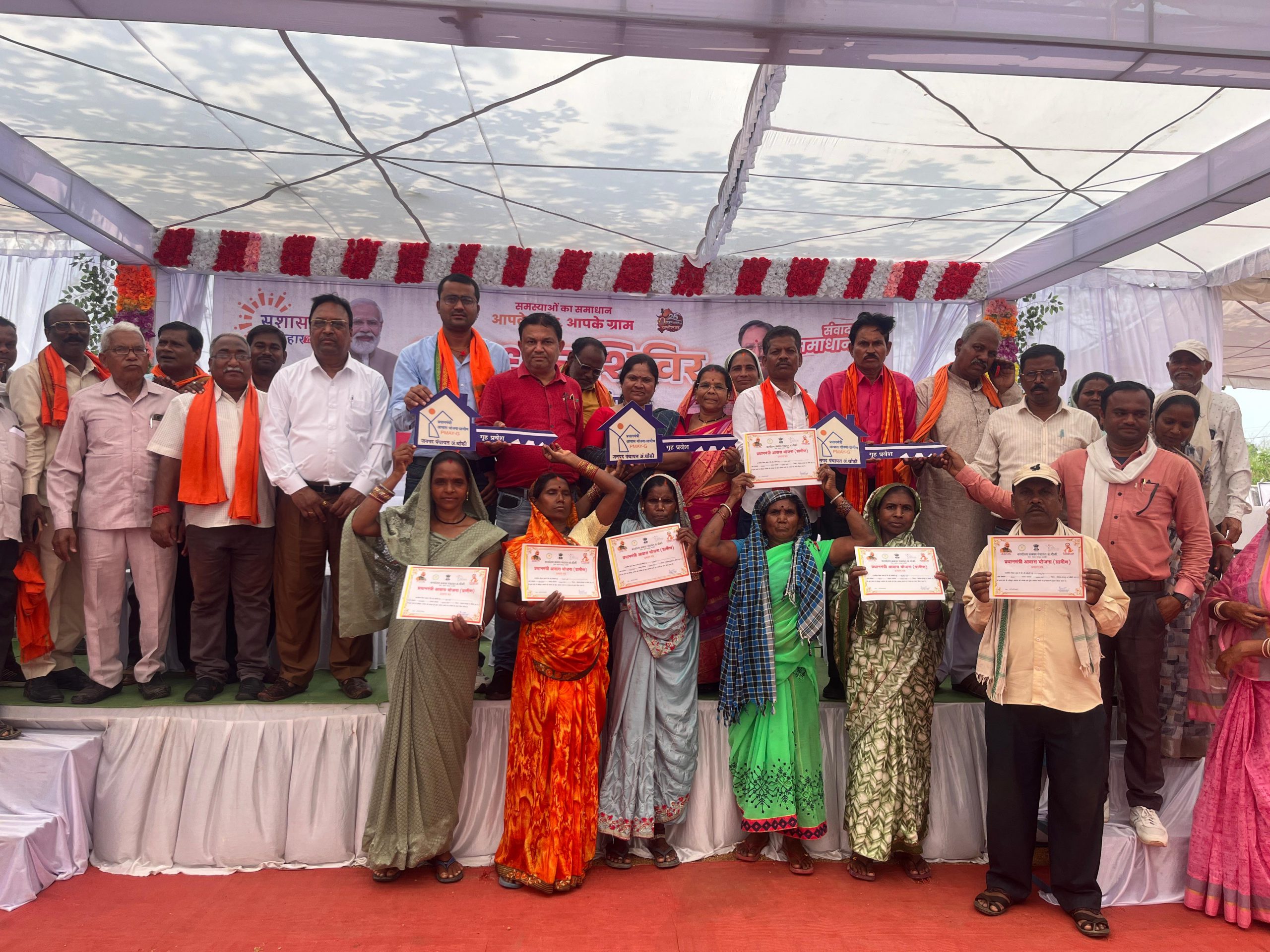मोहला। छत्तीसगढ़ शासन द्वारा चलाए जा रहे सुशासन तिहार आमजनों के लिए अपनी समस्याओं से निजात पाने का एक सुनहरा मौका साबित हो रहा है। मुख्यमंत्री श्री विष्णुदेव साय की मंशानुसार आमजनों की समस्याओं का समयबद्ध निराकरण करनेए विभिन्न योजनाओं से आमजनों को लाभान्वित करने के साथ ही शासकीय कार्यों में पारदर्शी लाने के लिए सुशासन तिहार आयोजित किया जा रहा है। इसके साथ ही शासन प्रशासन आमजनों की बीच पहुंचकर योजनाओं के क्रियान्वयन व आमजनों को मिल रहे लाभ का मूल्यांकन कर रहे हैं। इसके परिणामस्वरूप ग्रामीणों को अपने सपनों को साकार करने का मौका मिल रहा है। ग्रामीणजनों की मांगों व शिकायतों पर तत्काल कार्यवाही करते हुए समाधान किया जा रहा है। जनता की हर समस्याओं का समाधान होने से ग्रामीणों में खुशहाली देखने को मिल रहा है। सुशासन तिहार को लेकर ग्रामीणों में उत्साह का माहौल है। ग्रामीण आमजनों को शासन की विभिन्न महत्वाकांक्षी योजनाओं से लाभान्वित किया जा रहा है। अपनी हर तरह की समस्याओं से निजात पाने में सुशासन तिहार विकसित छत्तीसगढ़ के सपने को साकार कर रहा है। जिला मोहला मानपुर अंबागढ़ चौकी के अंतर्गत आज जनपद पंचायत अंबागढ़ चौकी के ग्राम पंचायत मोंगरा में समाधान शिविर आयोजित किया गया। मोंगरा में आयोजित समाधान शिविर में सभी पात्र 2180 आवेदकों को लाभान्वित किया गया।